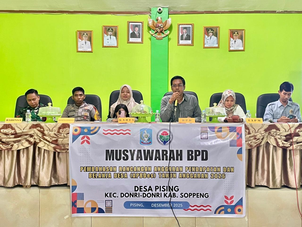 Musyawarah BPD Pembahasan Rancangan Anggaran Pendapatan Belanja Desa ( APBDesa ) Tahun Anggaran 2026, dilaksanakan di Aula Kantor Desa Pising pada hari Jumat, tanggal 26 Desember 2025.